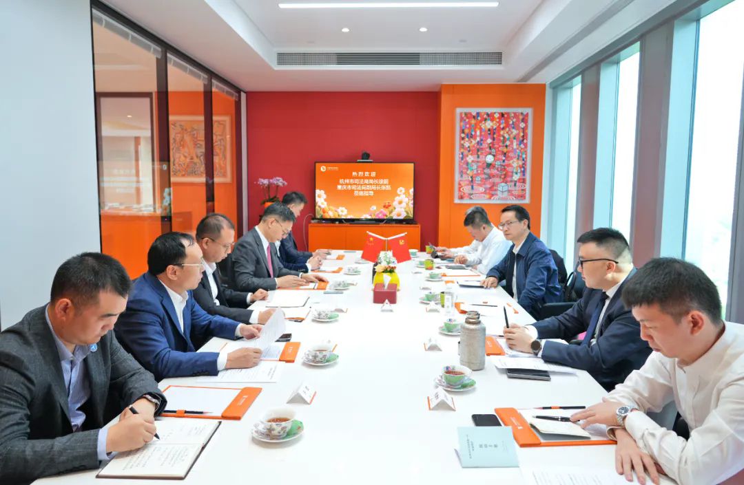 2025年10月28日,杭州市司法局局长徐前一行在重庆市司法局副局长张凯的陪同下,莅临中豪律师事务所就涉外法治建设工作调研交流。管委会主席袁小彬,合伙人俞理伟、涂小琴等热情接待,并进行座谈交流。