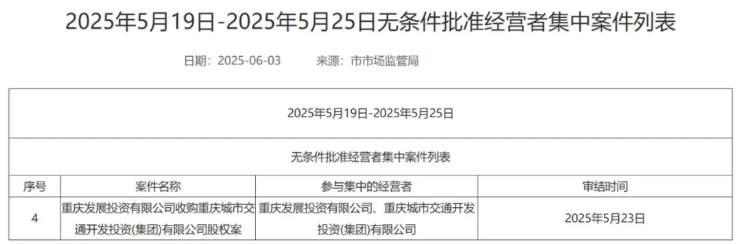 引言:为深化国资国企改革,增强国有企业核心功能,推动国有企业战略性重组和专业化整合,经重庆市政府同意,重庆市国资委拟将持有的重庆城市交通开发投资(集团)有限公司股权(以下简称重庆交开投集团)无偿划转至重庆发展投资公司。该重组整合构成经营者集中并达到申报条件,需按《反垄断法》的规定完成经营者集中反垄断审查。
